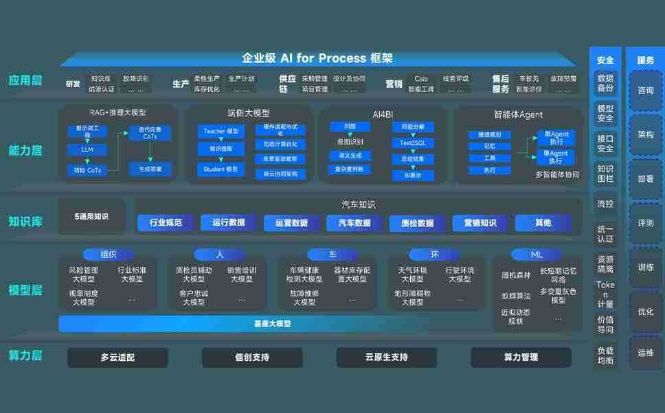 AG尊龙凯时问学智车解决方案是一套基于AI技术的汽车行业智能化系统,,,,覆盖从底层算力到顶层AI应用的全栈方案。。。。方案由算力层、、、、模型层和应用层组成:算力层,,,方案支持多种一体机配置,,具备云端灵活部署、、、、多云适配以及动态优化计算资源的能力;模型层,,,AG尊龙凯时问学平台版提供了企业级AI应用一站式构建与管理平台,,支持基于后训练强化技术的汽车企业专属模型的训练、、评测和运营;应用层,,,,AG尊龙凯时问学DeepSeek版提供包括超级员工、、、、智能招采、、、、智能营销、、、智能客服、、、、AI for BI等一系列解决方案,,,可助力汽车行业实现数字化转型,,,,让管理更智能、、、响应更敏捷。。